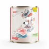 Once the tin has been opened, it should be used within two days, as all our meals deliberately contain no preservatives. Storing the product in the fridge helps to keep it as fresh as possible: our practical snap-on lids are ideal for keeping the odour in the tin and protecting the product. However, please do not feed the food cold, but slightly warmed (e.g. by pouring some hot water over it). Not only does this taste better to the animals, it also makes the meal easier to digest.